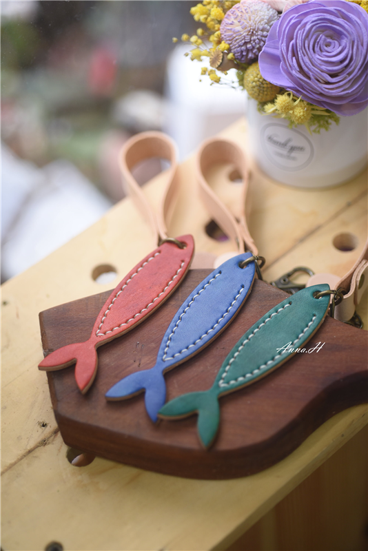 尺寸:皮革部分不含五金,長寬約10*1.6公分,小魚長寬約10.5*2.5公分,皮革部分可刻字。