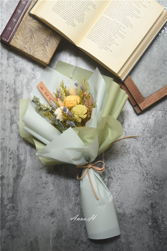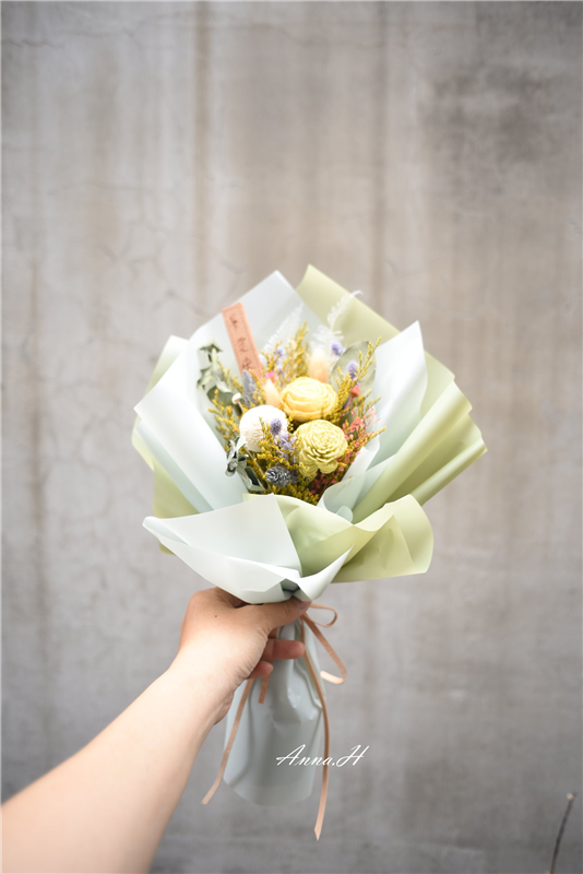 注意:乾燥花材脆弱,包裝紙容易因為擠壓而產生皺褶,我們在出貨前會妥善包裝,若有花材折損或是包裝紙有皺褶,皆為正常現象,請知悉。:)